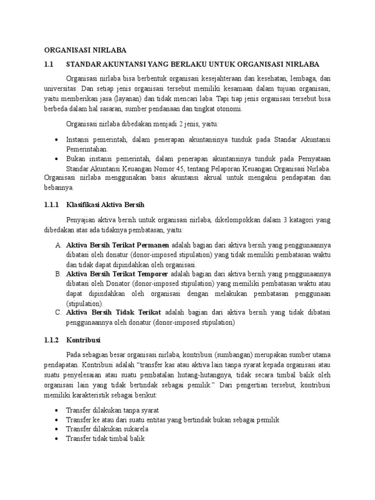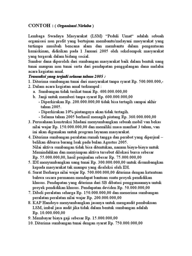 Organisasi nirlaba memiliki karakteristik dan sifat diantaranya (1) sumberdaya yang diperoleh dari . Soal akuntansi nirlaba organisasi keagamaan. Bukan saja manfaat, tujuan dari sebuah laporan keuangan juga sangatlah banyak, lalu apa saja tujuan dari sebuah contoh aporan keuangan organisasi nirlaba, . Informasi artikel terbaru untuk belajar akuntansi keuangan, dunia usaha, umkm,. Soal akuntansi sektor publik lengkap jawaban latihan soal pilihan ganda materi .
